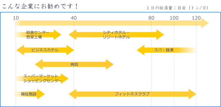 ホテル・病院・福祉施設などの大容量業務用途に対応!たっぷりのお湯を省エネ&エコロジーにお届け!